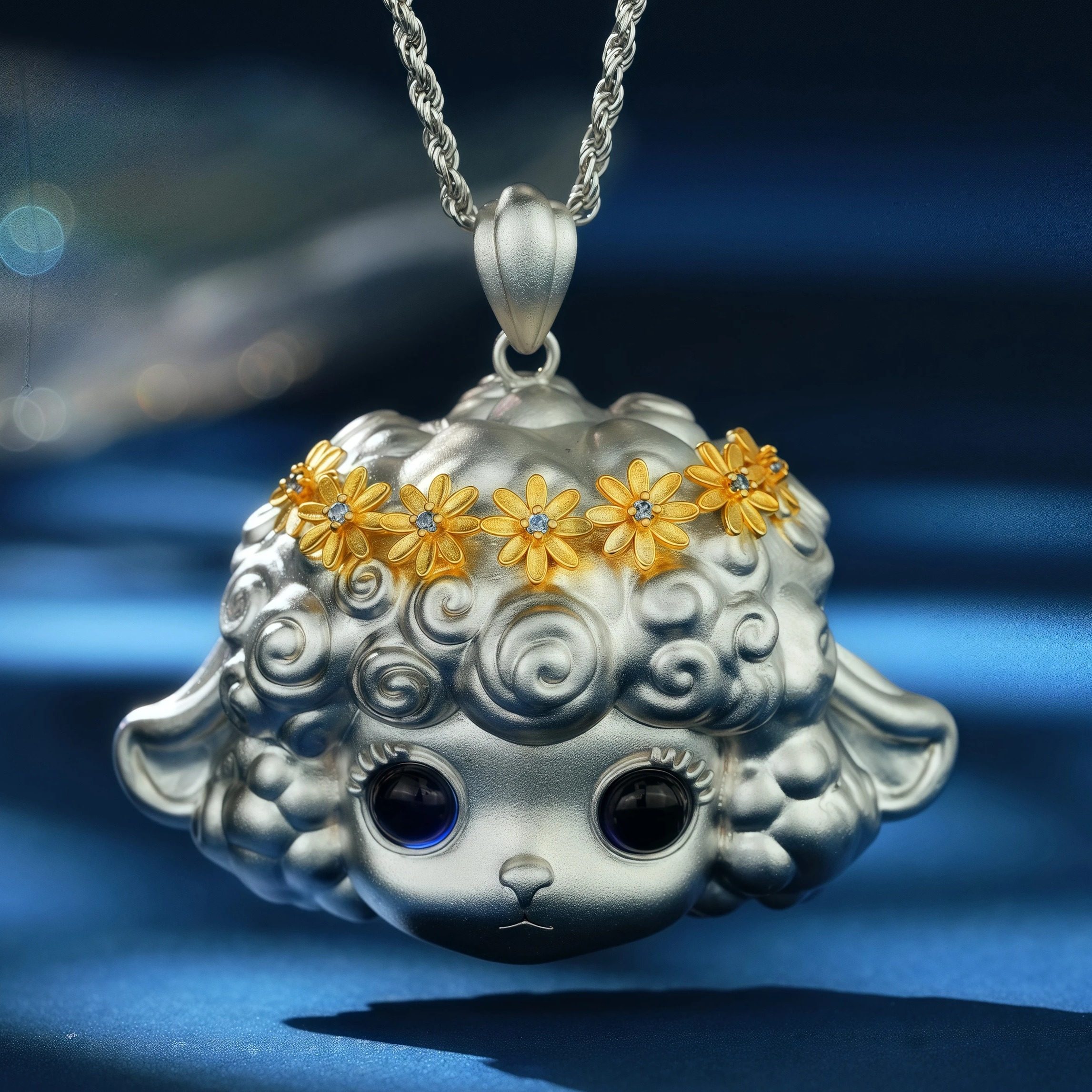 Cute beast zodiac sheep ring pendant beading niche original design does not oxidize, does not fade and does not collide