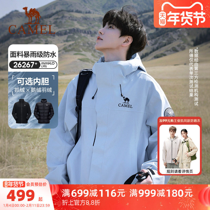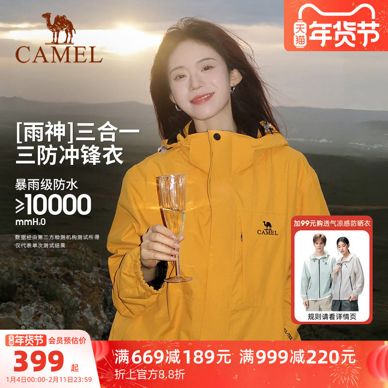 Camel outdoor jacket women's 26 years three-in-one goose down liner three-proof warm down mountaineering jacket jacket for men