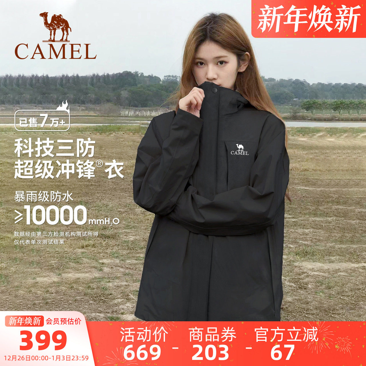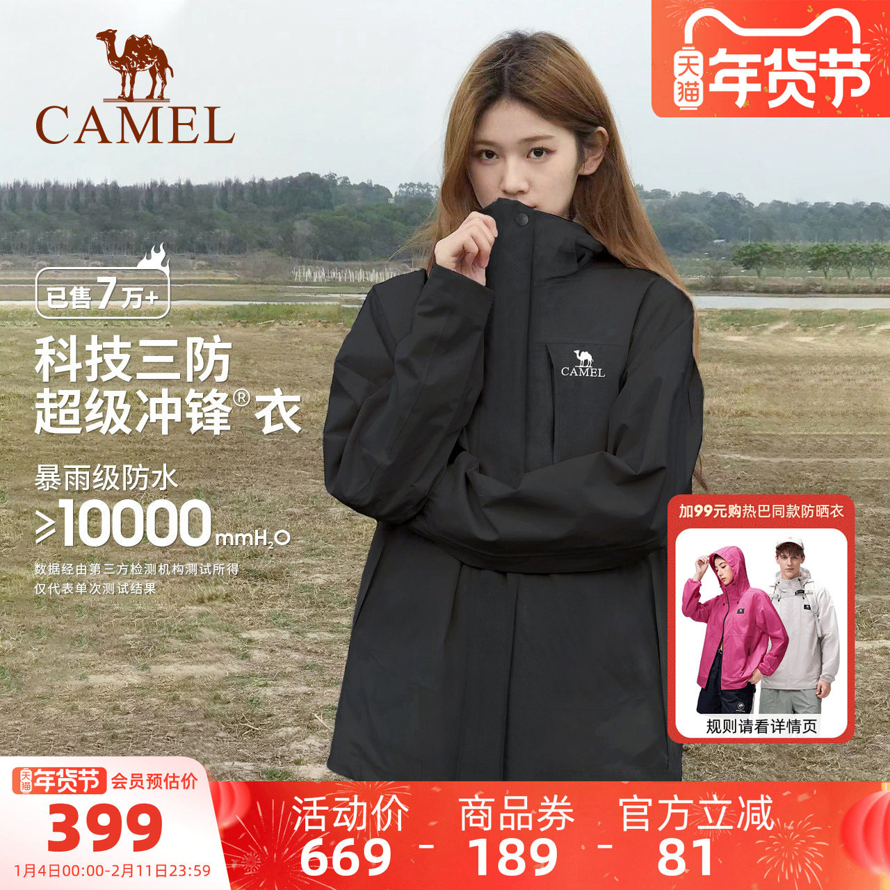 Camel outdoor jacket men's and women's three-in-one black jacket winter windproof and waterproof Tibetan three-proof mountaineering suit