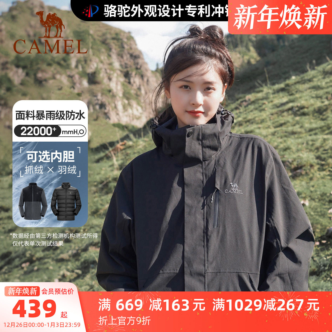 Camel outdoor jacket women's 25 years three-in-one goose down liner three-proof warm down mountaineering jacket men