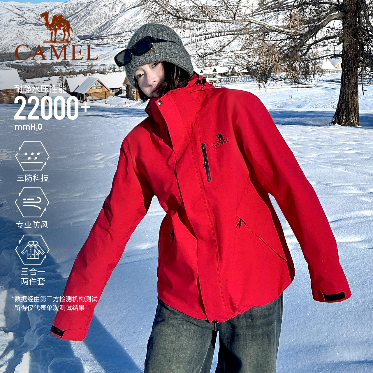 [New Year's Red] Camel 3514 series red jacket men's and women's three-in-one two-piece outdoor waterproof jacket