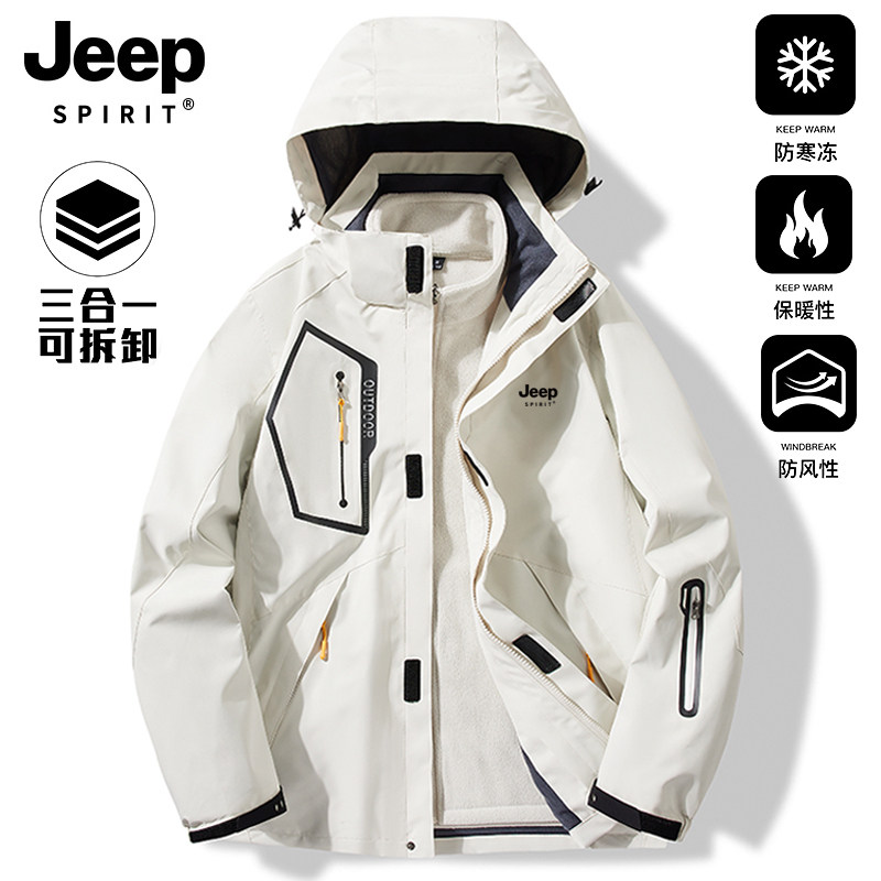 JEEP SPIRIT Jeep jacket 3-in-1 men's and women's 2025 spring and autumn new thickened jacket men's jacket
