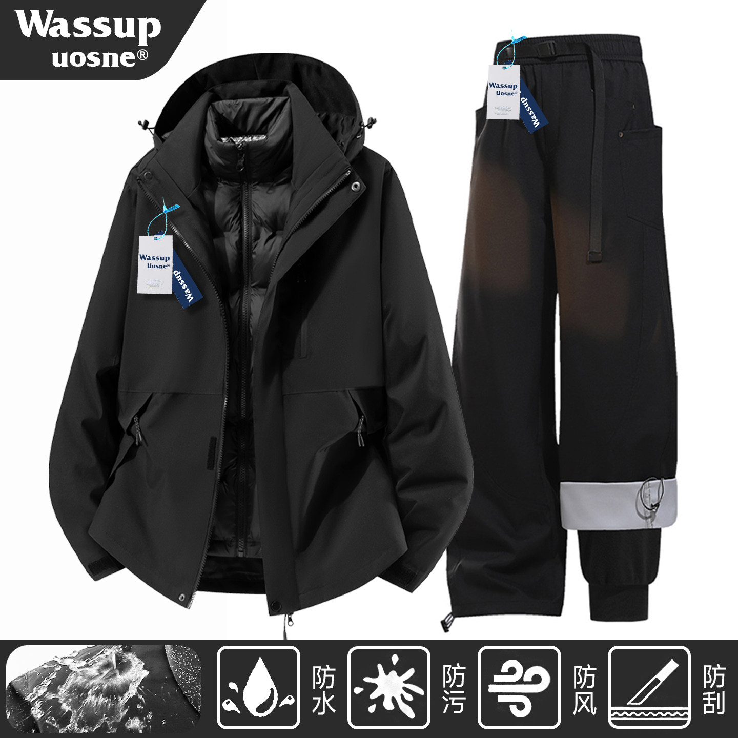 WASSUP UOSNE functional jacket men's and women's 3-in-1 detachable down liner waterproof jacket spring and autumn