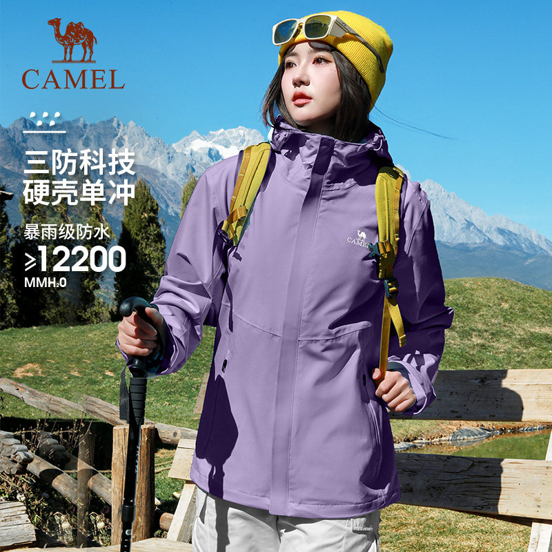 Camel purple jacket women's three-in-one 2026 spring and autumn windproof outdoor warm cold down jacket jacket men's