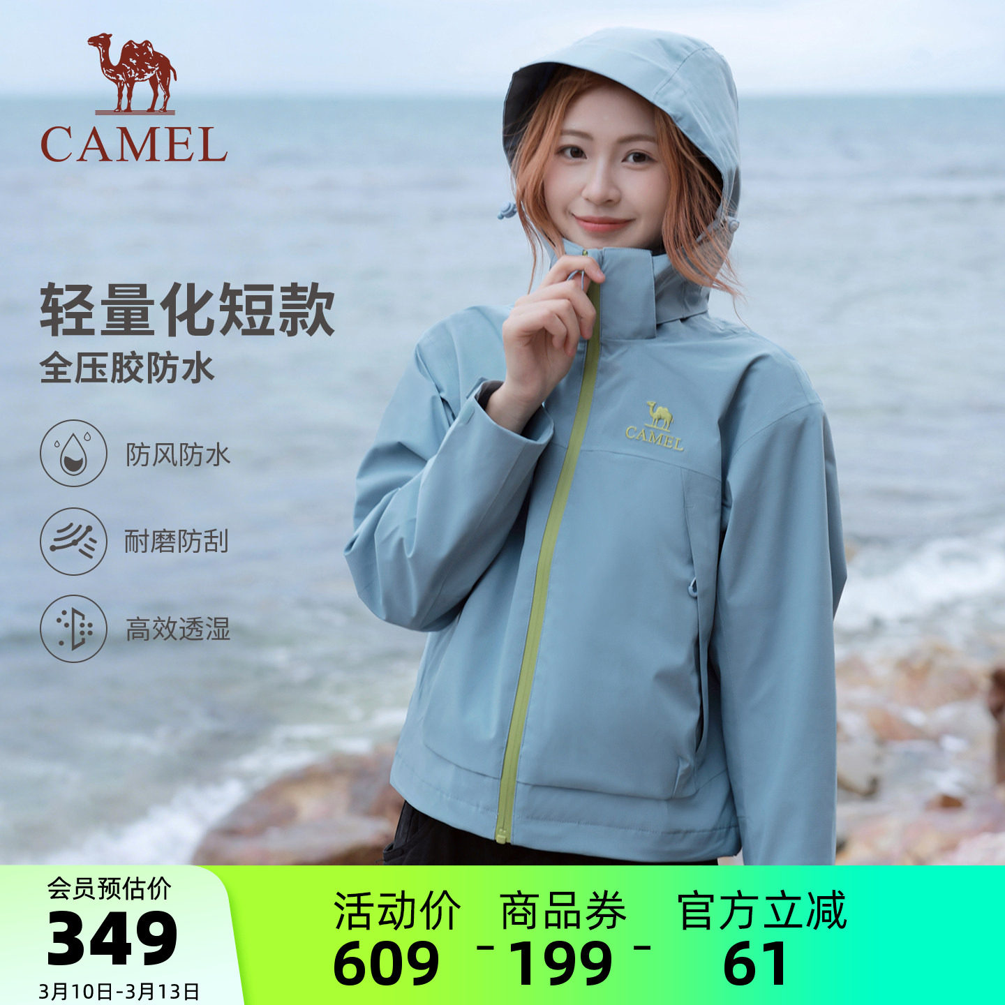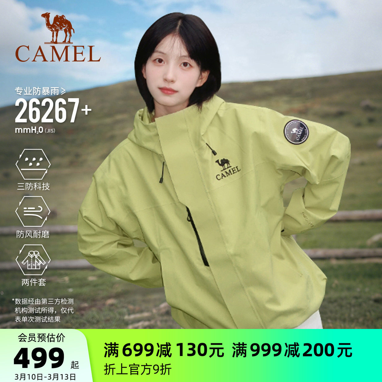 Camel outdoor single-layer jacket women's 2026 spring and summer windproof waterproof sports mountaineering suit three-proof short jacket for men