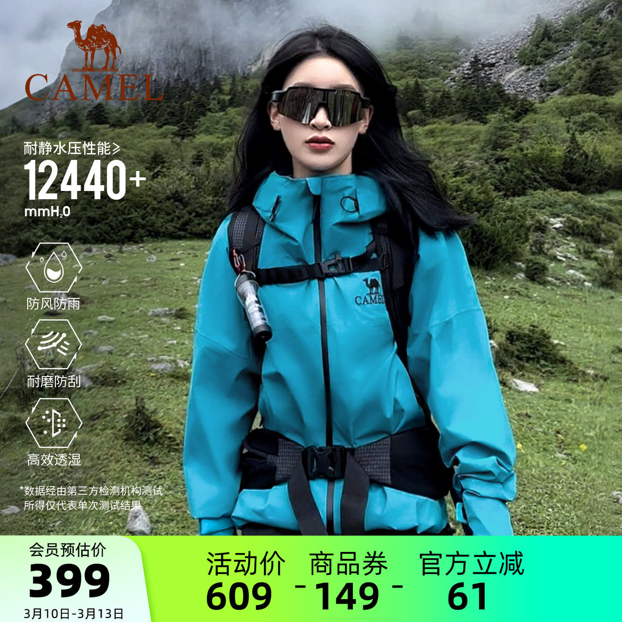 Camel outdoor diving blue rain god jacket women's windproof waterproof lightweight hard shell jacket men's single-layer mountaineering suit