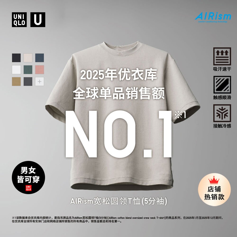 Uniqlo Men's Women's Quick Dry Crew Neck T-Shirt/Short Sleeve 26 Spring Summer New 482300
