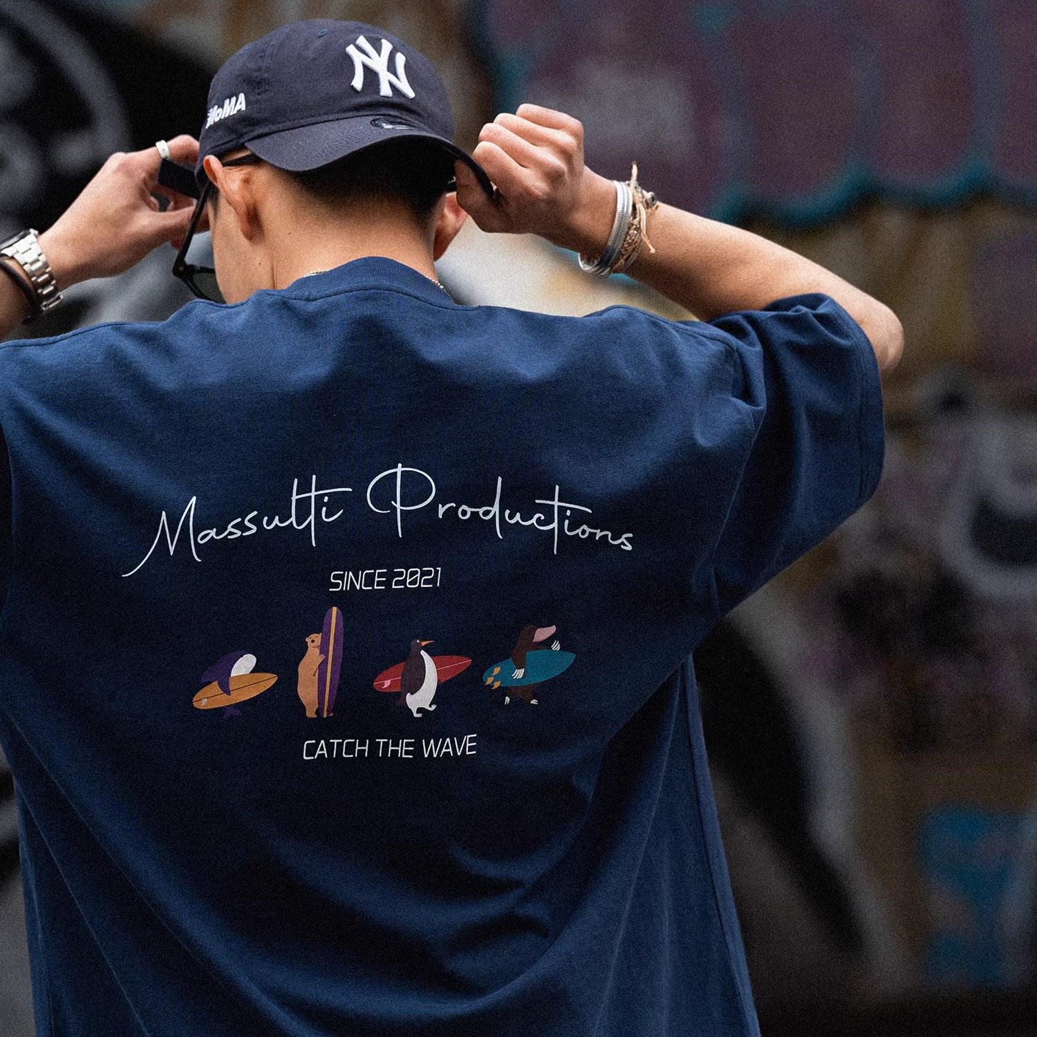 MASSULTI Japanese summer new fun surf print loose tee base pure cotton heavy short-sleeved T-shirt