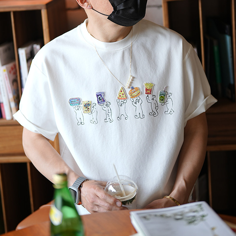 Hong Kong style high street patch embroidery loose short-sleeved T-shirt men's summer trend design ins versatile half-sleeved top