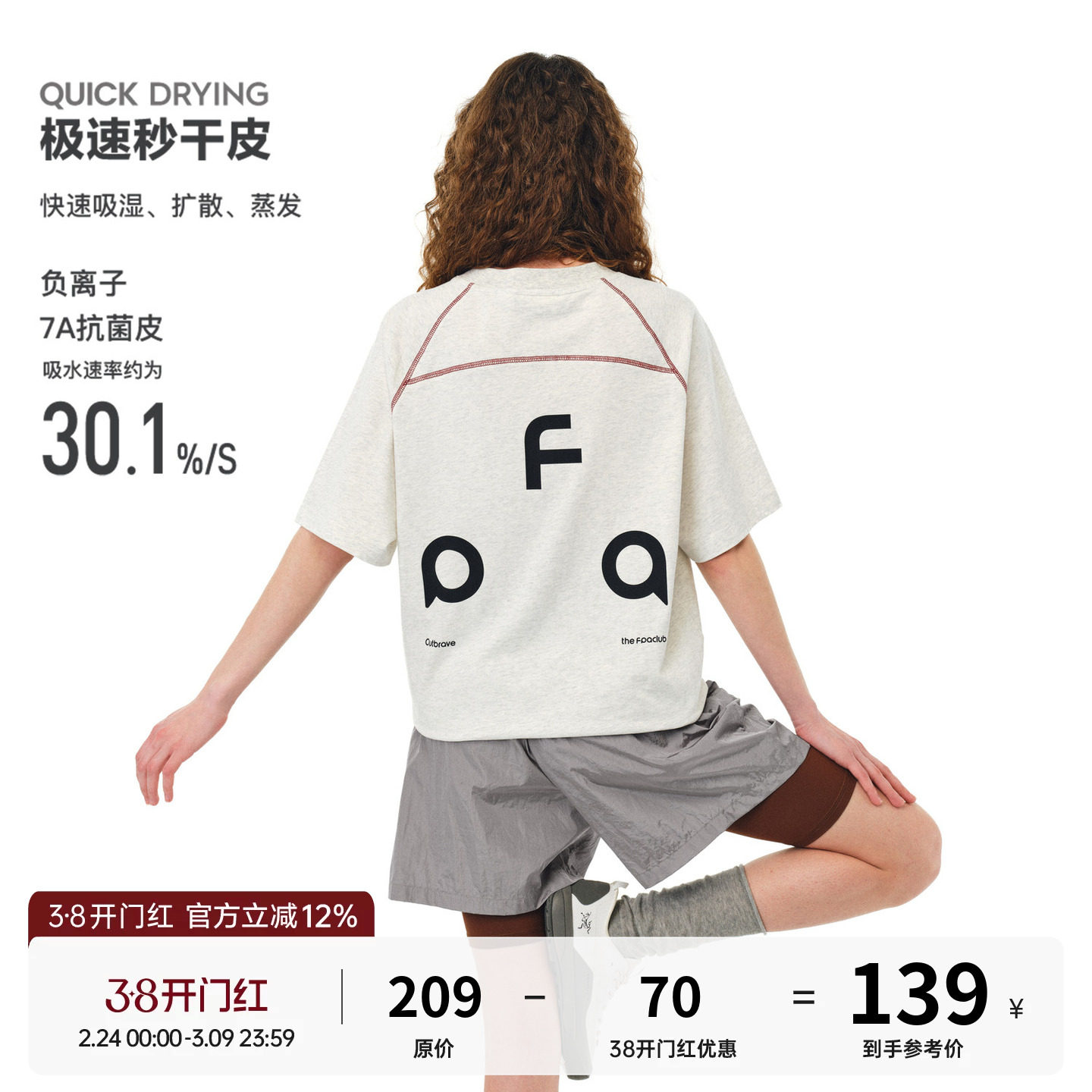 FPA quick-drying 7A antibacterial Hasselblad line short sleeve national tide brand summer round neck loose couple casual half-sleeved T-shirt