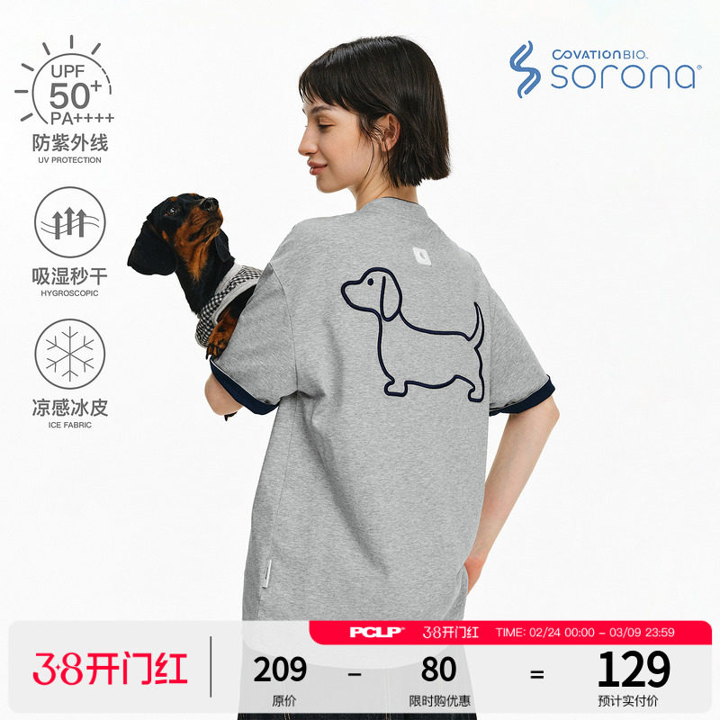 PCLP "Hollow Puppy" contrasting collar short sleeves trendy brand couple summer half sleeves loose slimming T-shirt top for men