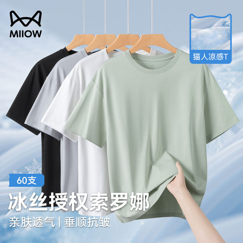 [Authorized real Solona] cat man cool ice silk short-sleeved T-shirt men's cotton quick-drying loose top base shirt