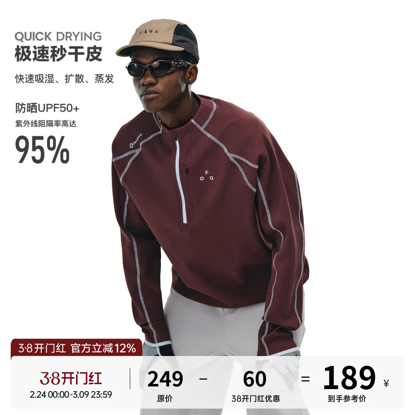 FPA quick-drying UPF50+ sunscreen sports long sleeve spring and autumn national tide half zipper half high neck loose couple T-shirt