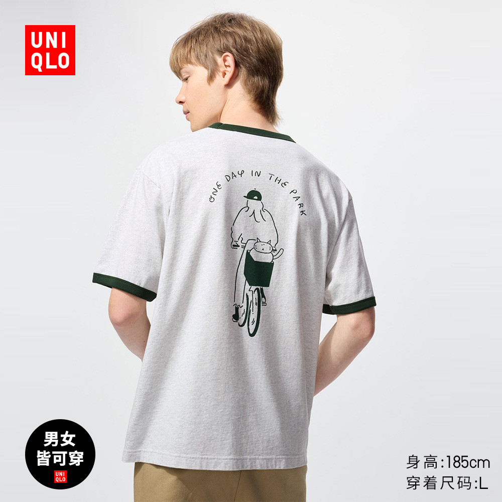 Uniqlo collaboration / men's and women's loose contrasting T-shirts / short-sleeved 485454