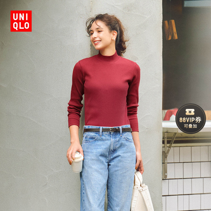 Uniqlo Women's Ribbed Turtleneck T-Shirt/Long-Sleeved Small Turtleneck with 25 Fall/Winter New 479588