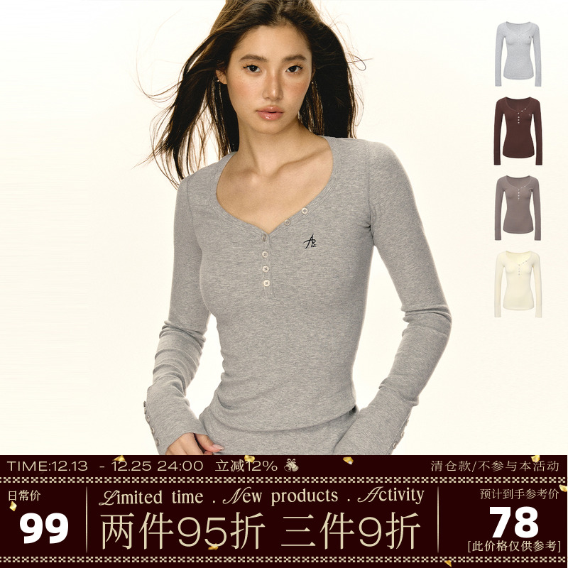Ariseism American Retro V-Neck Slim Long Sleeve T-Shirt Women's Fall 2025 New Inner Top Base Layer