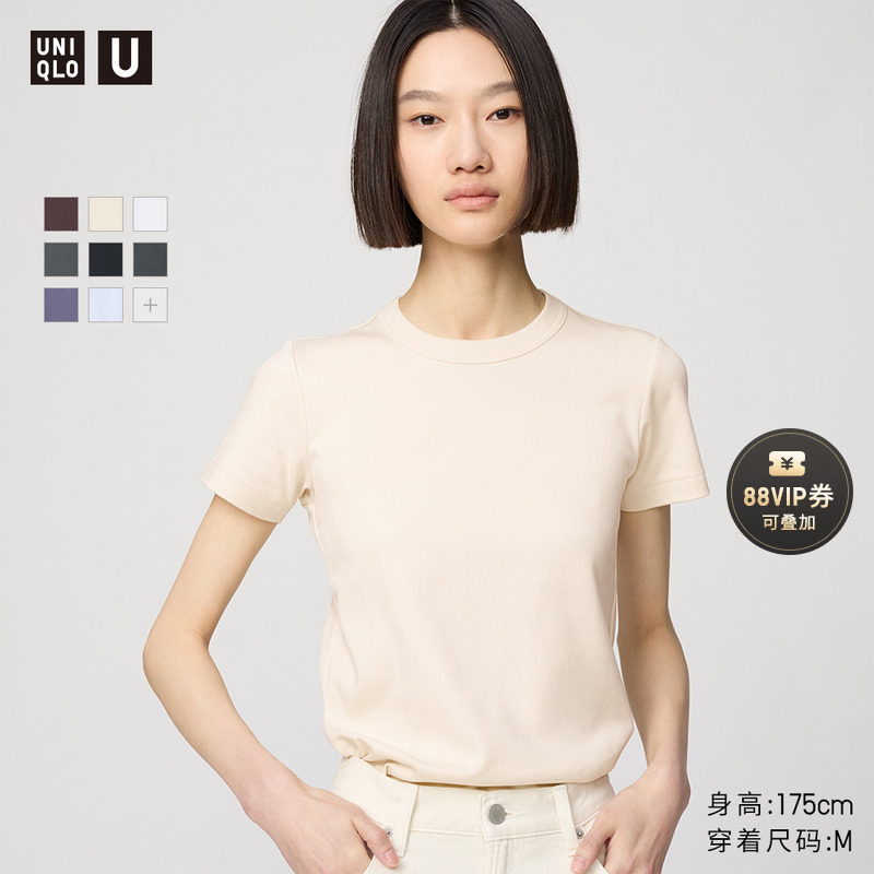 Uniqlo collaboration women's fashion master T-round neck T-shirt short sleeve front shoulder plain white T474404