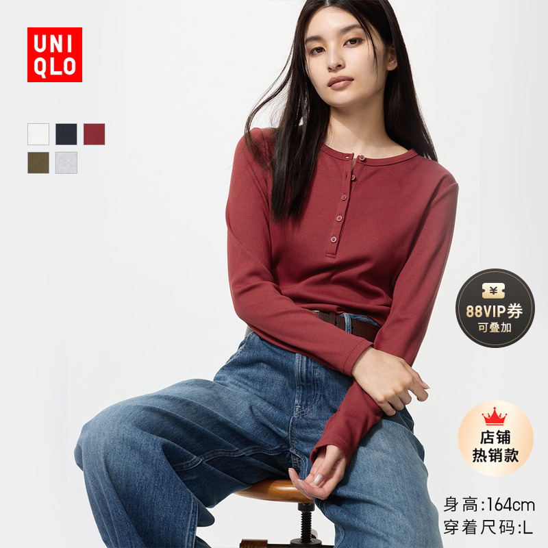 Uniqlo Women's Ribbed Henry Collar T-Shirt/Long Sleeve Slim Short Inner Bottom 479591 487908