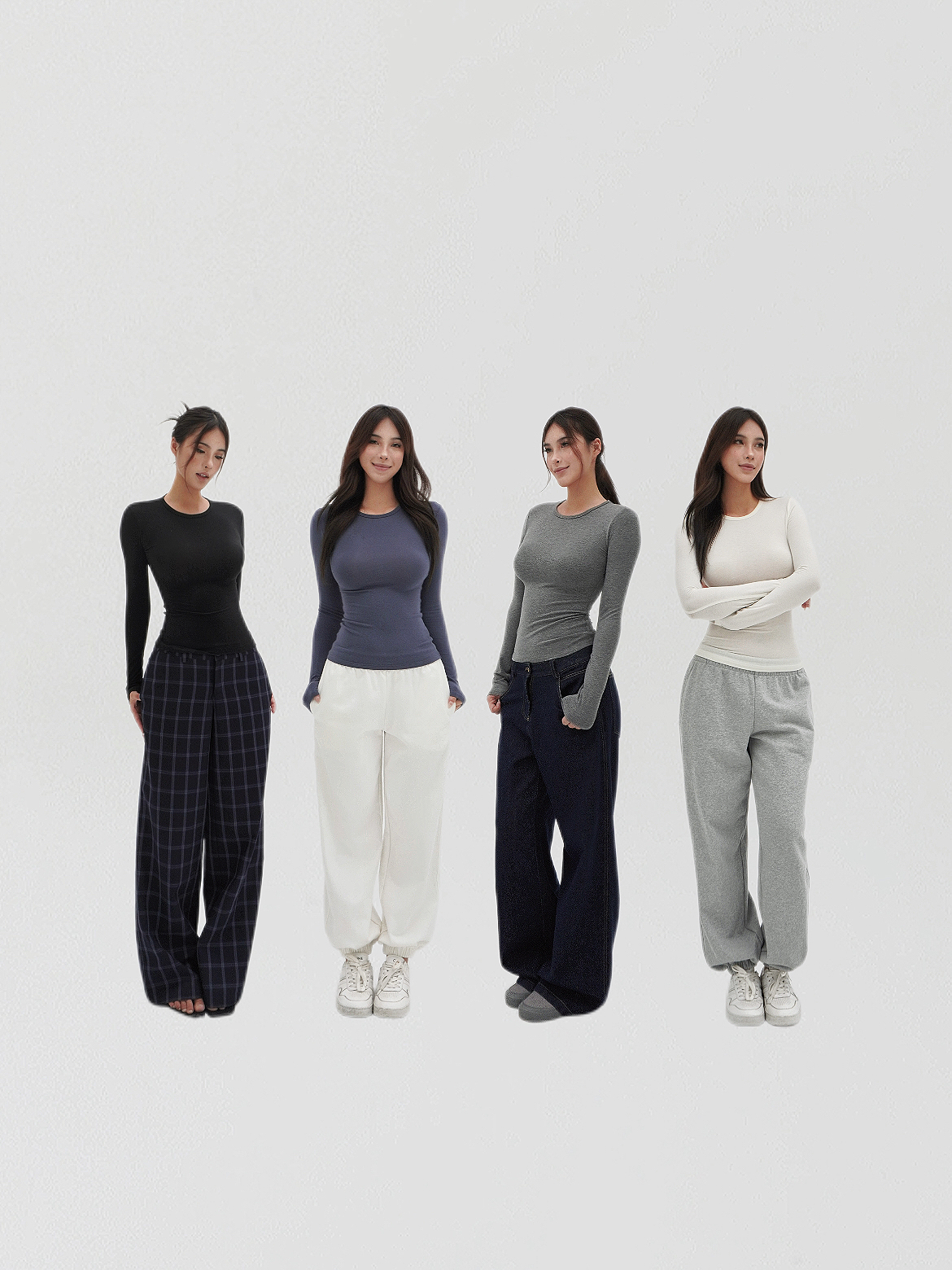 Jim Kennet's basic four-color crew neck slightly sheer shoulder long-sleeved base shirt
