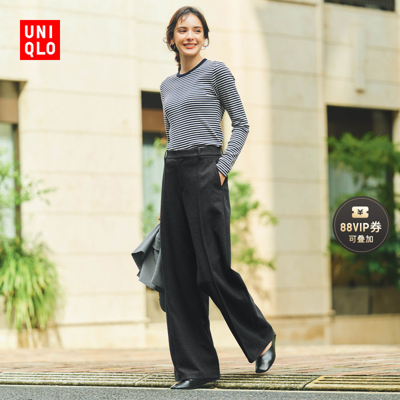 Uniqlo Women's Soft Ribbed Striped Crew Neck T-Shirt Long Sleeves Versatile Underwear with New Autumn and Winter 480036 Inside