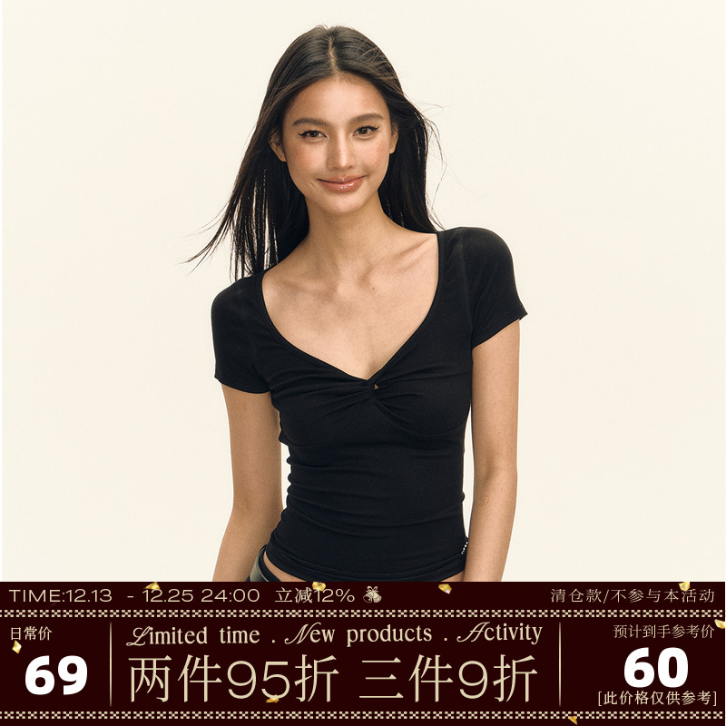 Ariseism American Retro Hot Girl Design V-neck Short Sleeve T-Shirt Women's Summer New Slim Slimming Top