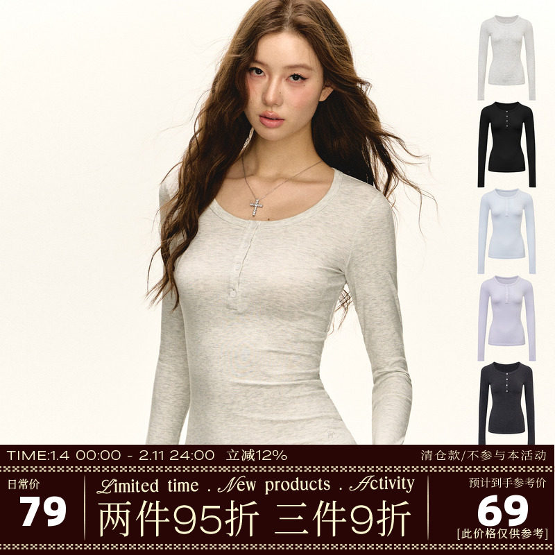 Ariseism American vintage design sense henry collar long sleeve T-shirt women's autumn hot girl slim base top