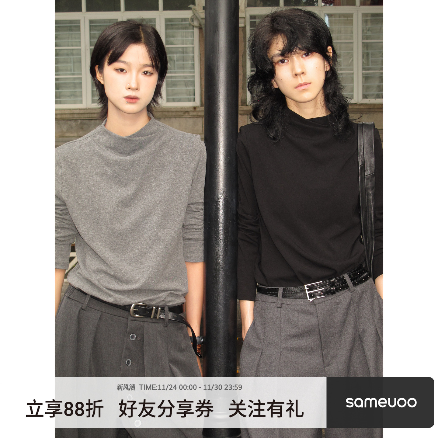 sameuoo free-range culture, cross chimney neck, straight shoulder, long-sleeved T-shirt, autumn and winter base shirt, and slim top undershirt