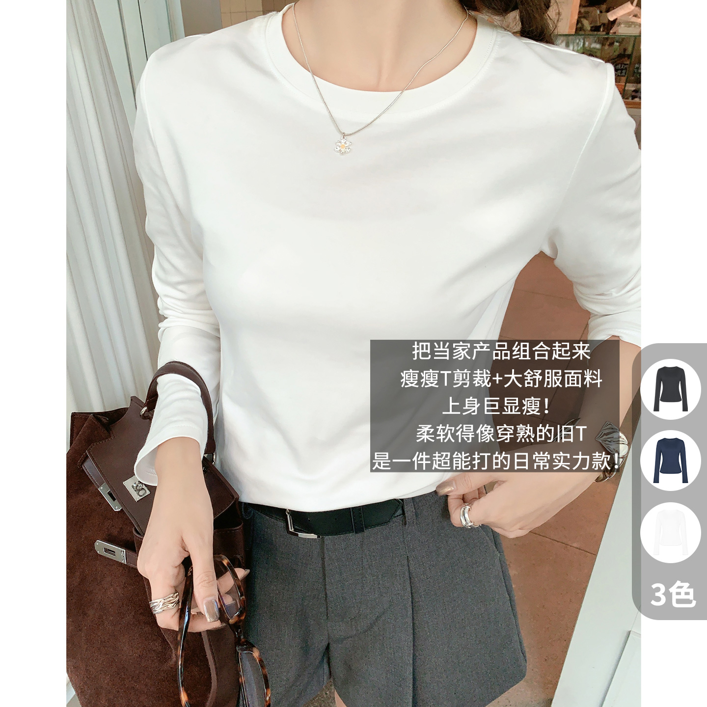 Aaisup white square neck long sleeve T-shirt women's autumn and winter design sense slim and slim inner top versatile base layer