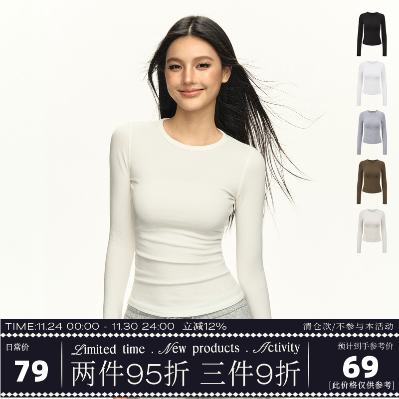 Ariseism American Retro Basic Long Sleeve T-Shirt Women's Fall 2025 New Slim Top with Underwear Underneath