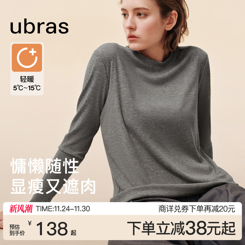 ubras merino wool silk crew neck underwear warm top autumn shirt mid-neck base shirt T-shirt