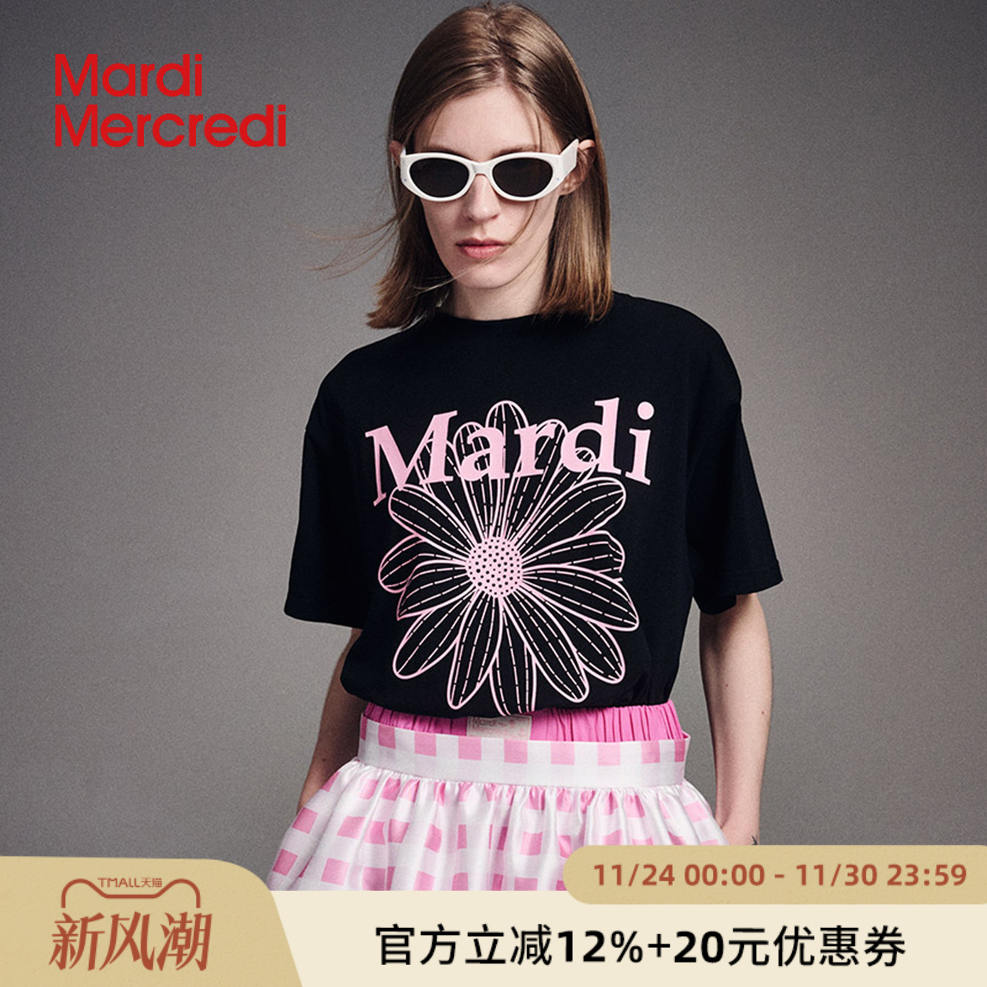 MardiMercredi small daisy black pink short-sleeved T-shirt women's round neck loose half-sleeve top Korean summer new style