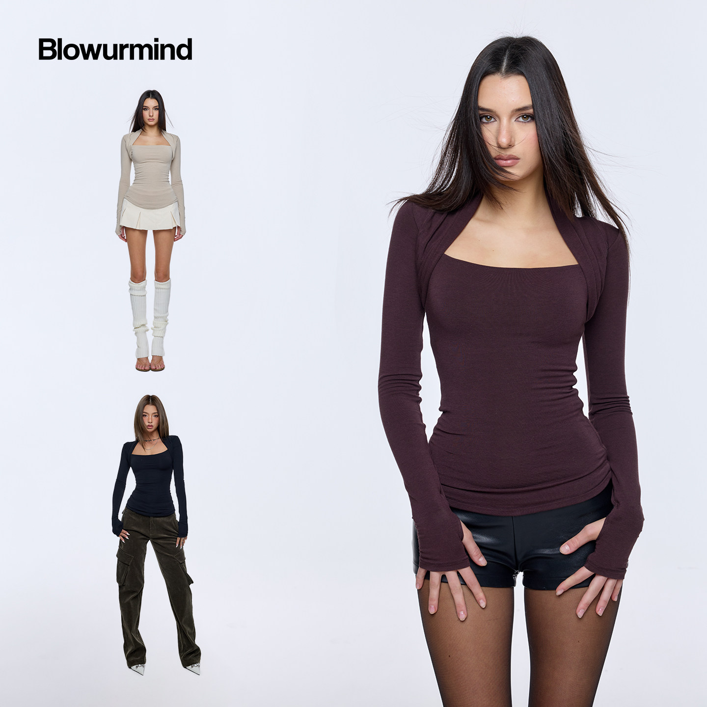 BUM [Right Angle Shoulder Holy Body] Tencel wool two fake two pieces of waist tight and slim long-sleeved top