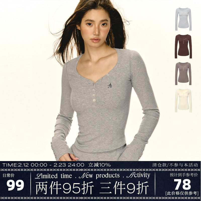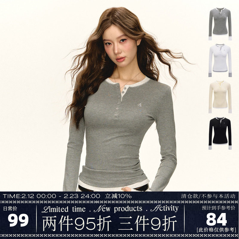 Ariseism American vintage design sense Henry collared two long-sleeved T-shirts women's autumn new slim tops