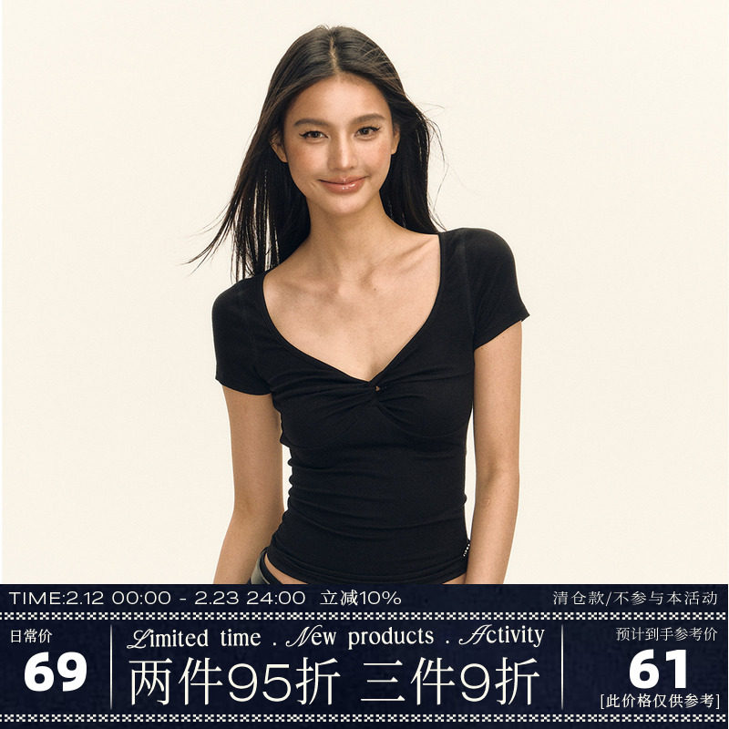 Ariseism American Retro Hot Girl Design V-neck Short Sleeve T-Shirt Women's Summer New Slim Slimming Top
