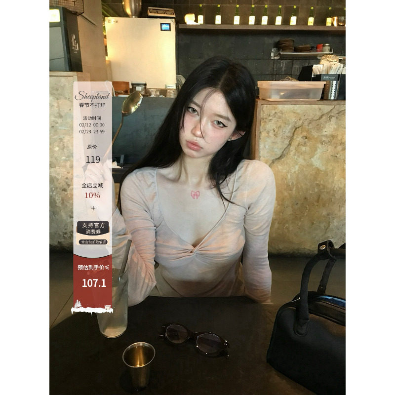 Sheepland angel skin Tencel wool V-neck twisted long sleeve T-shirt women's autumn and winter underwear with top base layer
