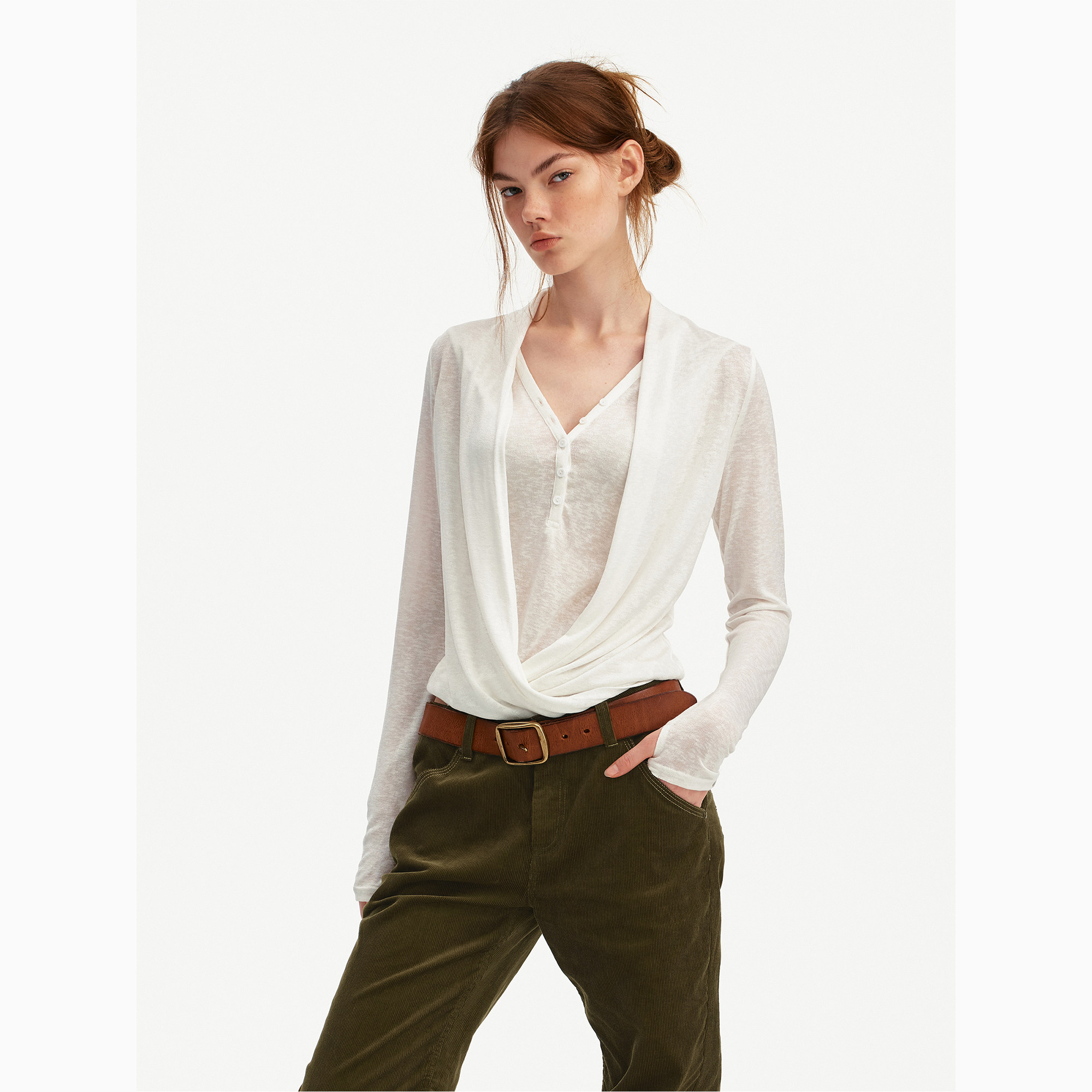 3RD fake two cross-draped V-neck Tencel linen base shirts slim long-sleeved T-shirts