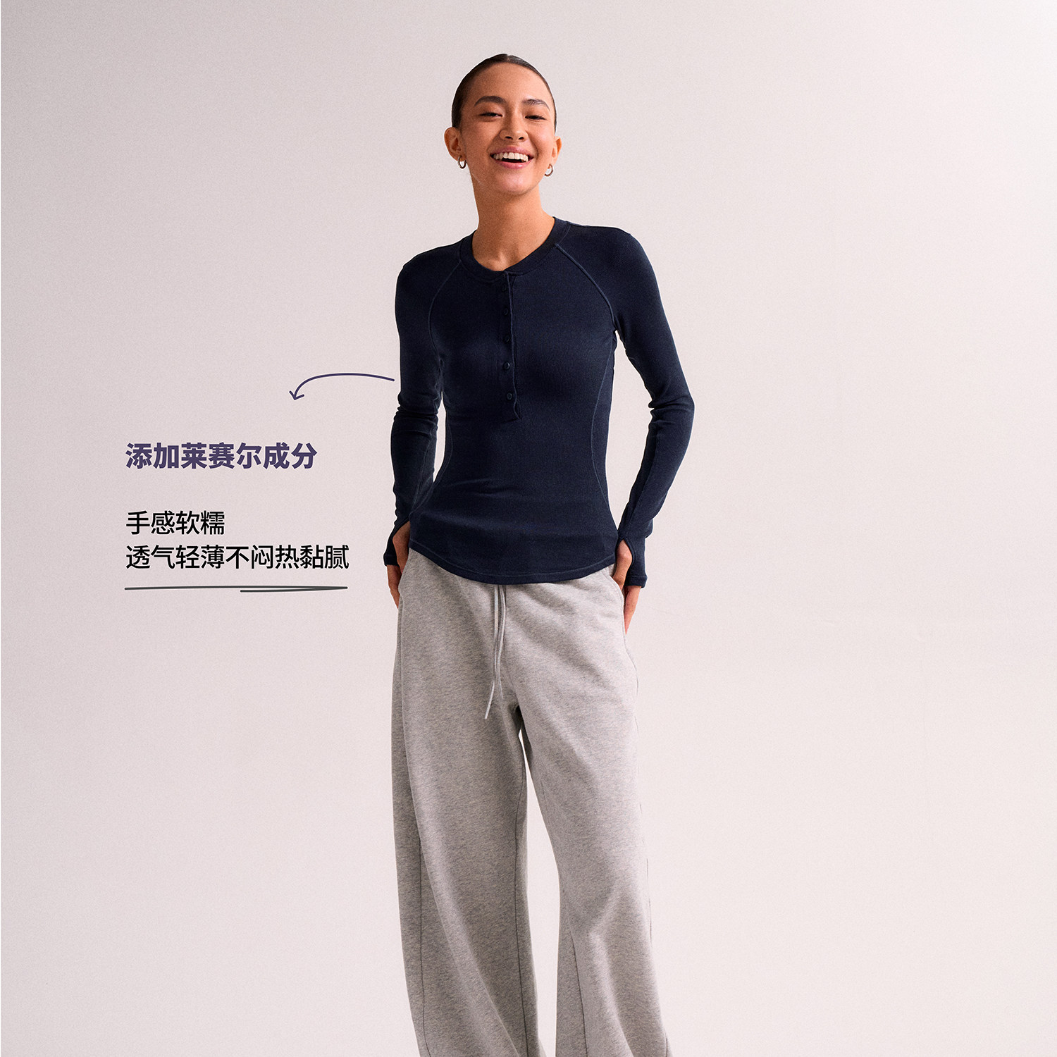 Swing day Tencel Modal Henry neck straight shoulder tight slimming sports long sleeve bottom top for women