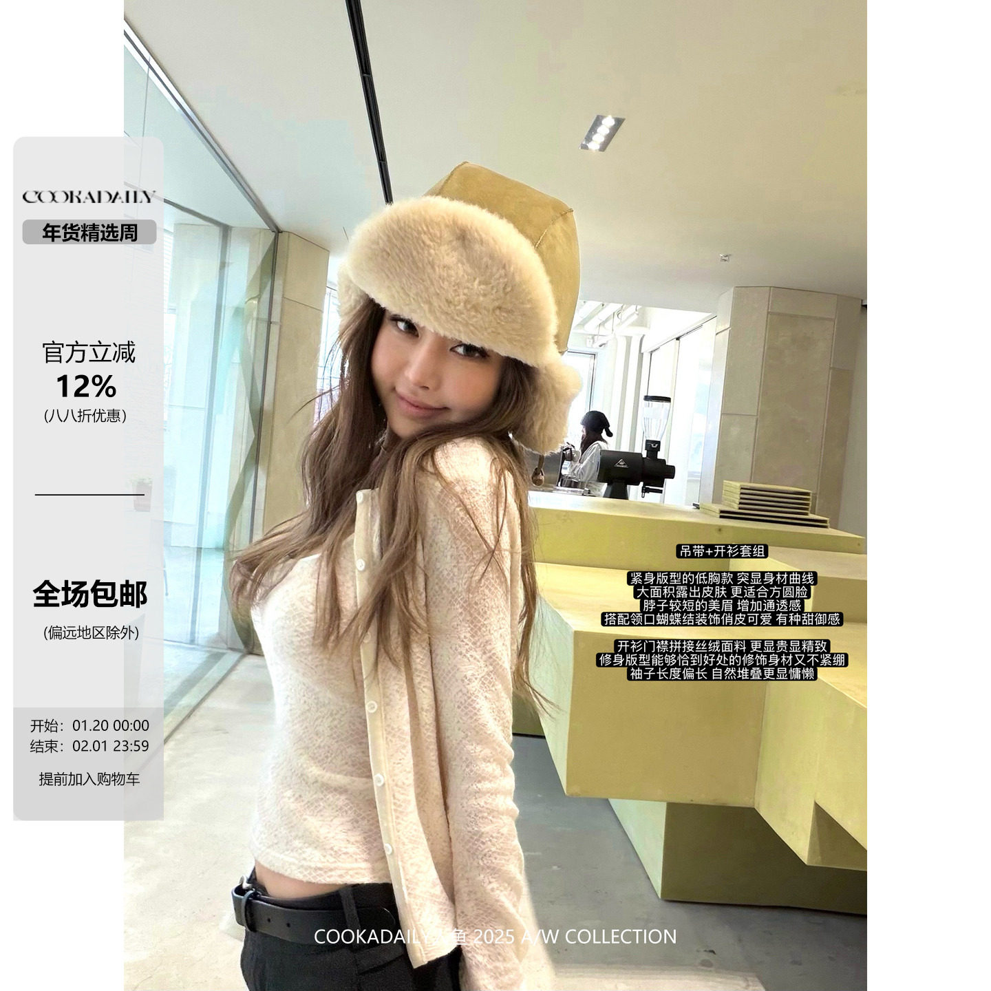 cookadaily mermaid Korean sweet lace patched velvet bow suspender long sleeve cardigan set two-piece