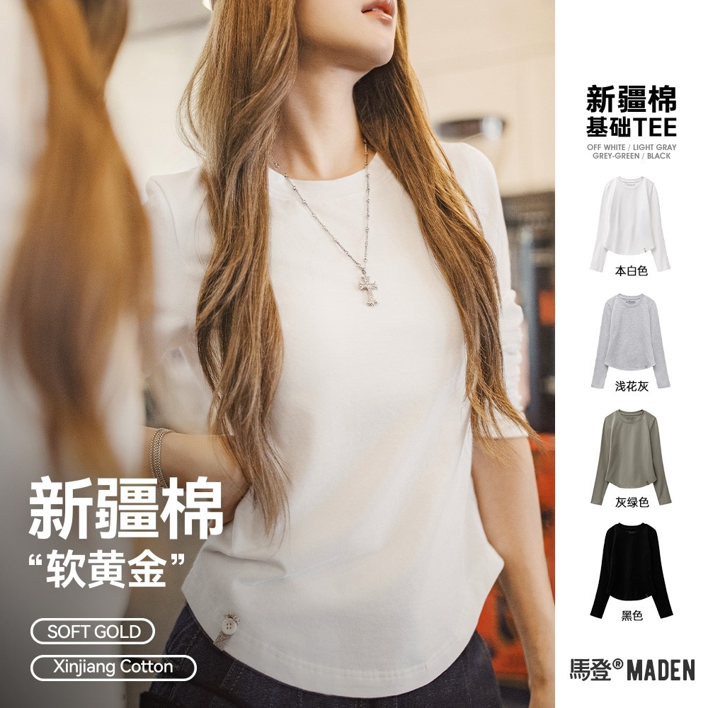 Madden Xinjiang cotton black and white basic shoulder brushed slim long-sleeved T-shirt base shirt with top women's winter