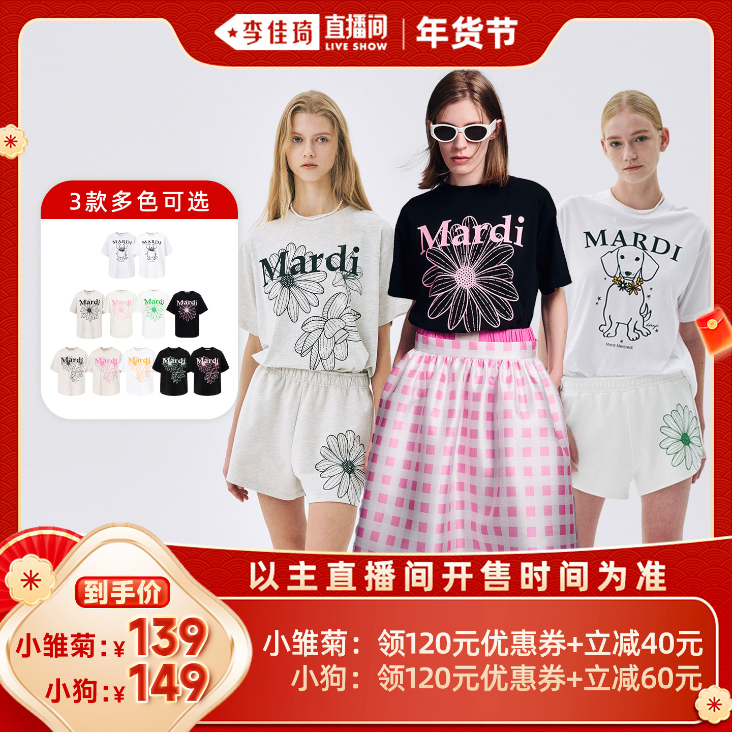 【Li Jiaqi New Year's Fashion Festival】MardiMercredi three-flower/small daisy/dachshund dog loose T-shirt