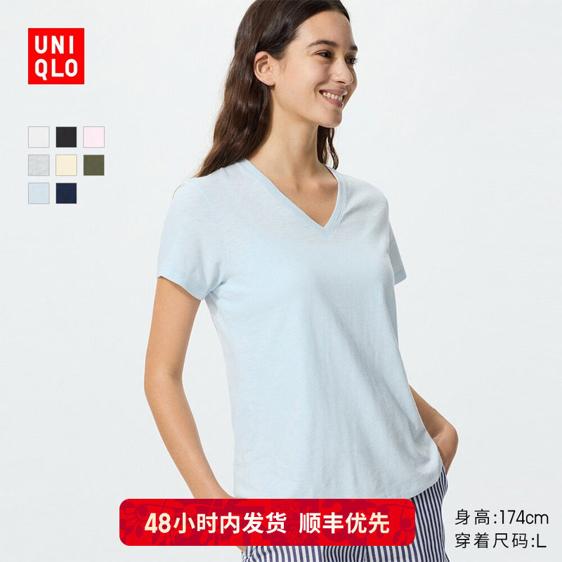 Priority SF Uniqlo Women's Bamboo Yarn V-Neck T-Shirt/Short Sleeve 26 Spring and Summer New 483460