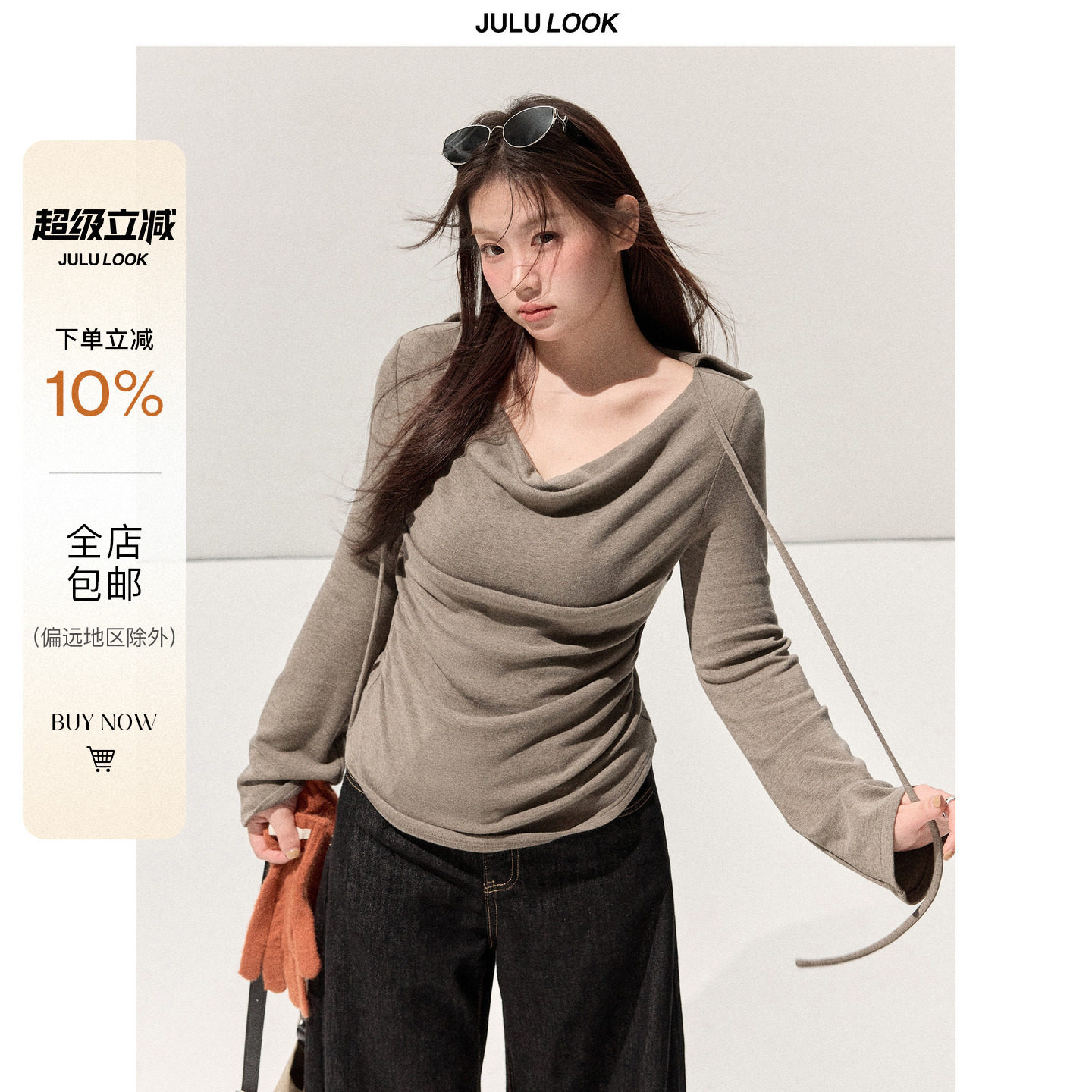 Julu Studio "Light Salt and Slightly Sweet" slightly chubby mm collar waist slimming long sleeve T-base shirt plus-size top