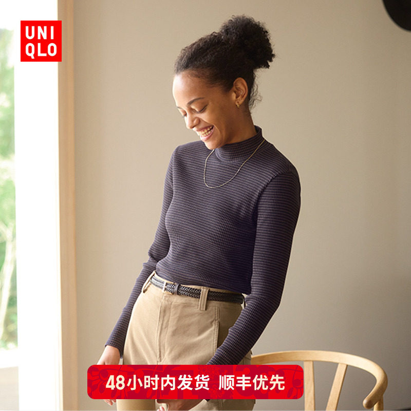 Priority is given to SF Uniqlo women's ribbed striped turtleneck T-shirt/long-sleeved small turtleneck with 481026