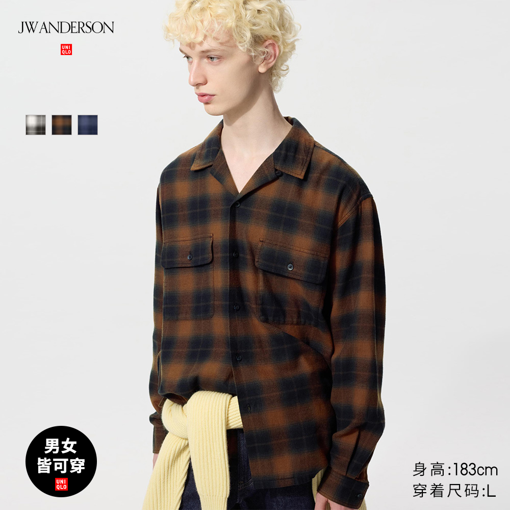 Uniqlo collaboration men's and women's soft cotton open collar loose plaid shirt long sleeve 25 new 480803