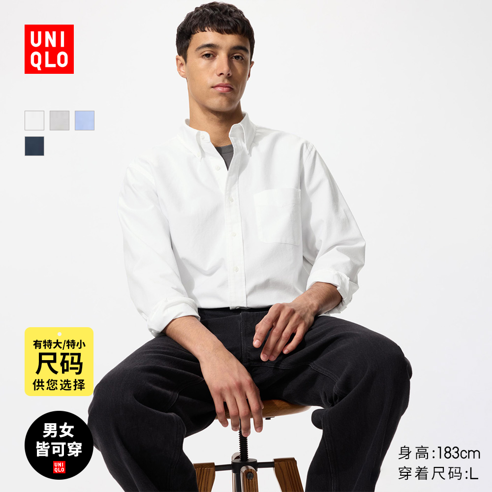 Uniqlo men's and women's Oxford spun shirts long-sleeved shirts casual plain casual commuter 478086 475998