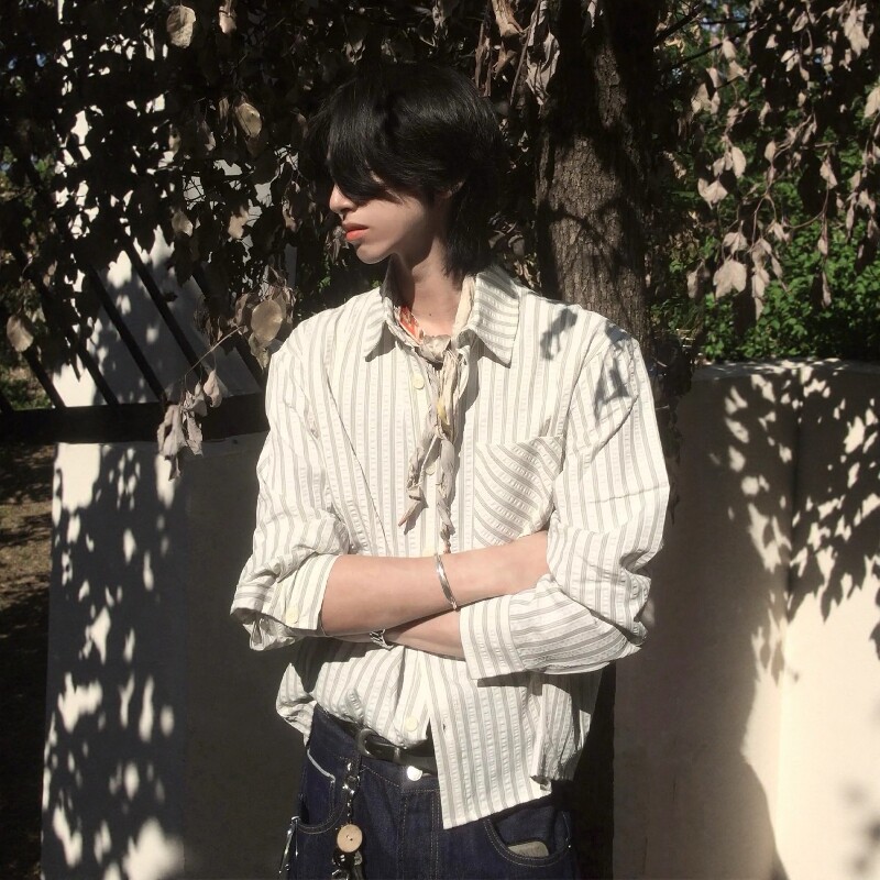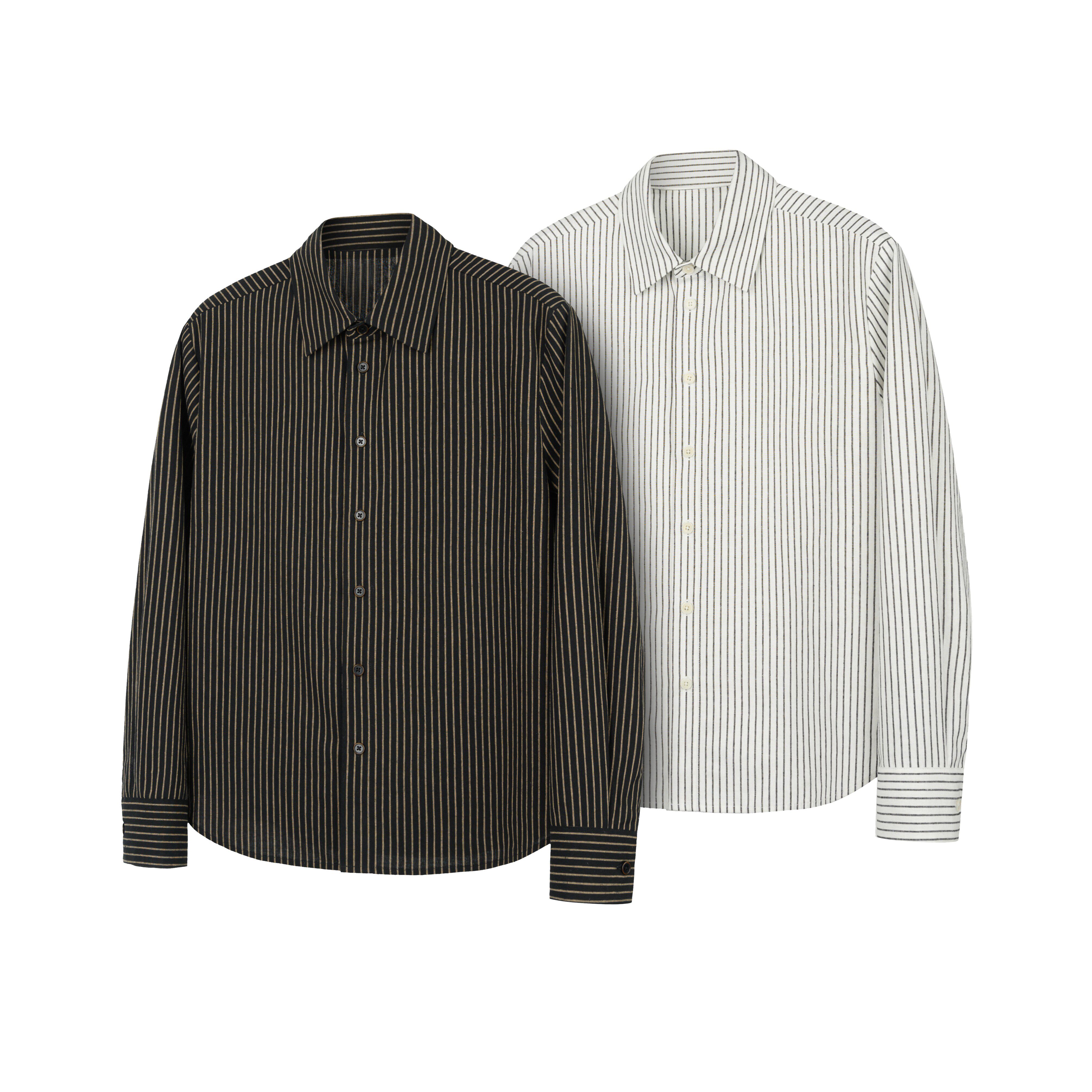 American seersucker long-sleeved shirt jacket men's spring high-intelligence straight shoulder shirt cleanfit striped top