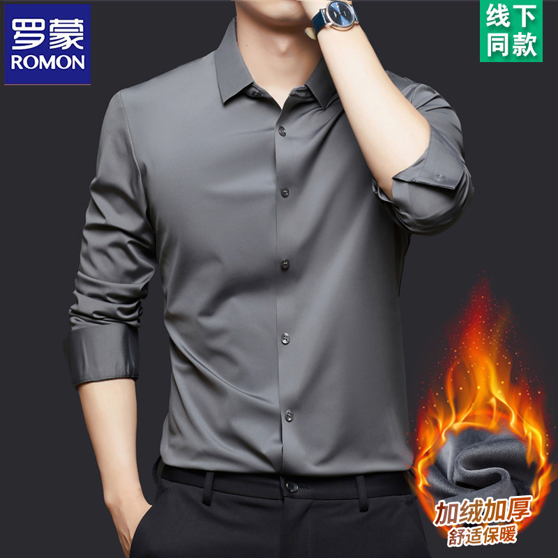 Romon high-end men's plus-size long-sleeved shirt autumn and winter fleece thickened solid color business iron-free anti-wrinkle shirt for men