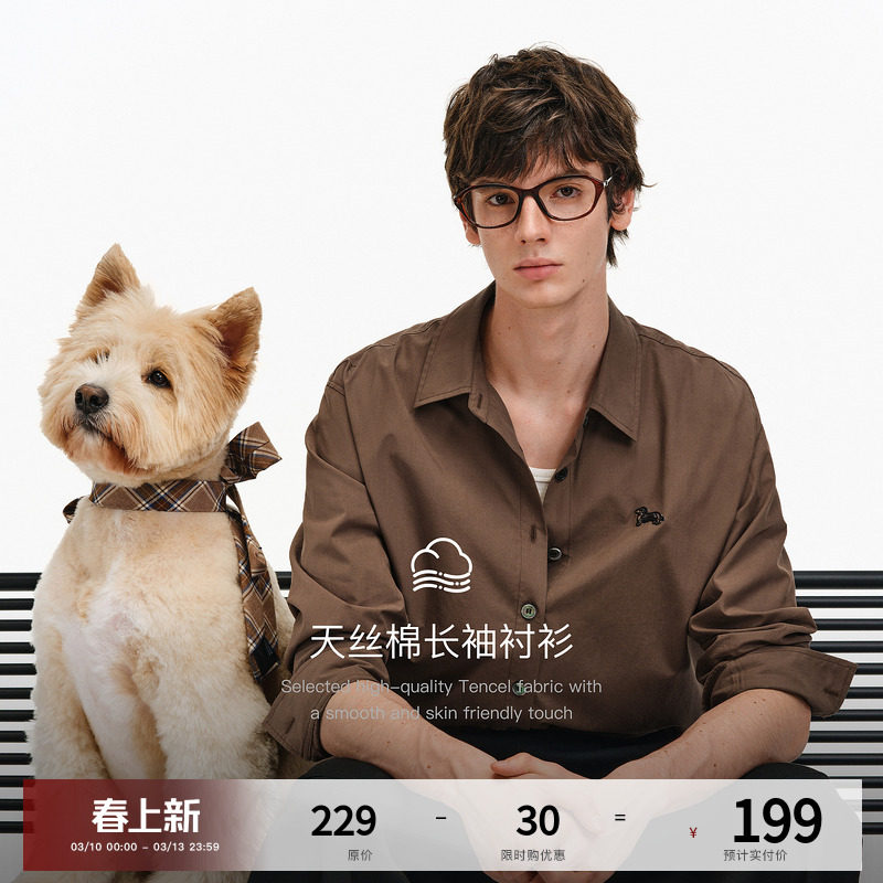 PCLP Tencel cotton long-sleeved shirt is a trendy brand niche design sense of autumn and winter loose casual and versatile long-sleeved shirt