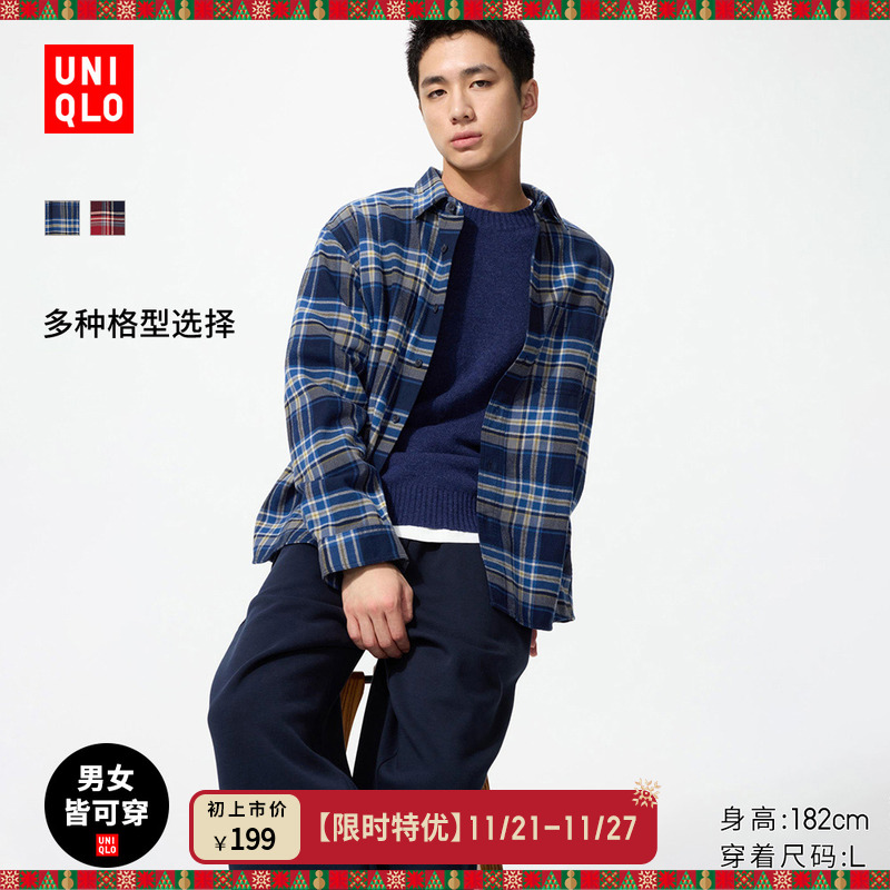 Uniqlo men's and women's flannel plaid shirts long-sleeved shirts and thin coats 25 fall-winter 480771 481227