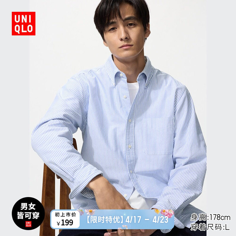 Uniqlo Men's Women's Oxford Striped Shirt Long Sleeve Shirt Casual Commuter 26 Spring Summer New 482446